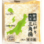 特徴新潟大豆を使用し、こめ油で揚げた油揚げ。そのまま使えるきざみタイプ。にがり100%・消泡剤不使用。